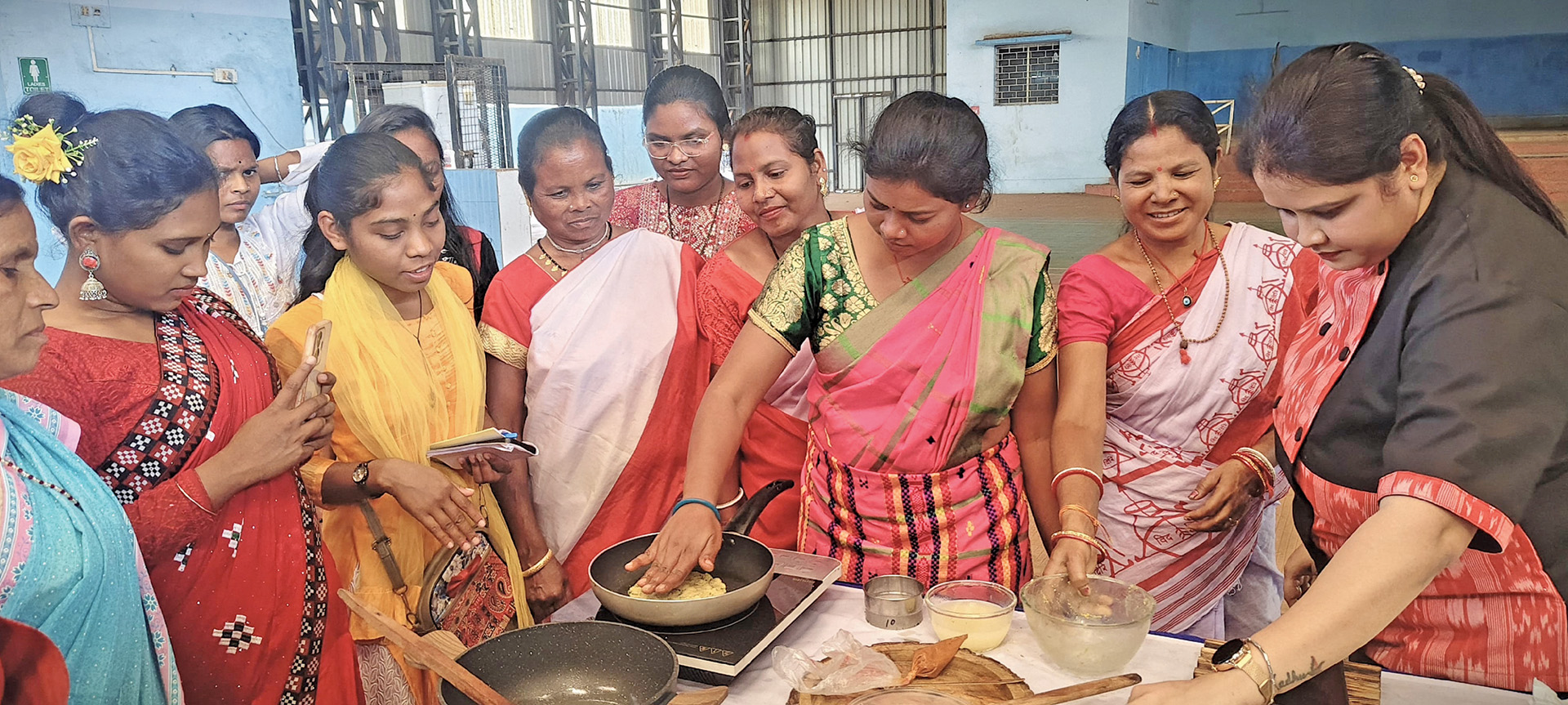 Realising that the home chefs were unfamiliar with large-scale cooking and service, the Tata Steel Foundation sought help from IHCL. “We engaged graduates from IHCL’s Hotelier Development Program (HDP) to guide the home chefs on how to adapt their traditional cooking methods for bulk cooking. The training focused on standardisation, consistency, hygiene, and service, while still using their traditional cooking utensils.”